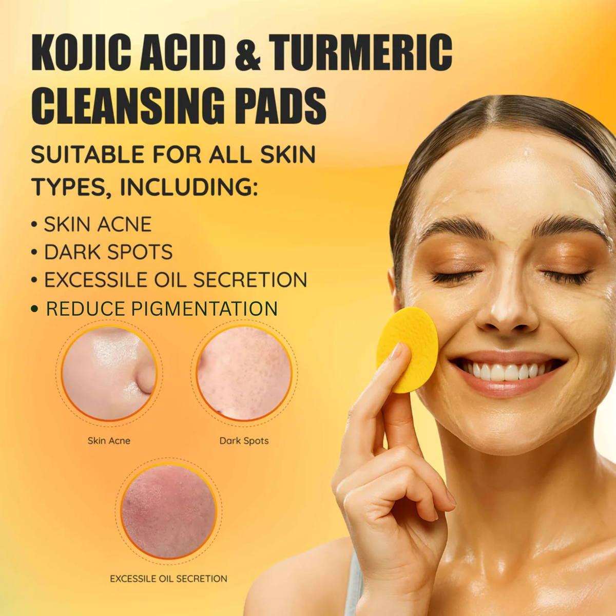 Turmeric, known for its antioxidant and anti-inflammatory properties, helps enhance your natural glow, while Kojic Acid targets dark spots, uneven skin tone, and stubborn pigmentation. These pads are perfect for daily use, giving your skin a refreshed, smooth, and radiant look without harsh scrubbing.