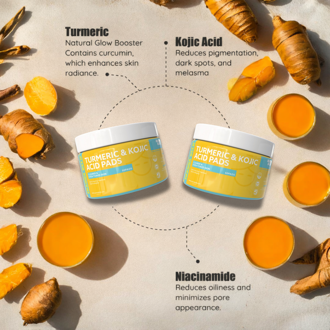 Reveal clearer, brighter, and more even-toned skin with our Turmeric & Kojic Acid Pads. Infused with powerful natural ingredients, these pre-soaked pads are designed to gently exfoliate, reduce pigmentation, and improve overall skin texture.