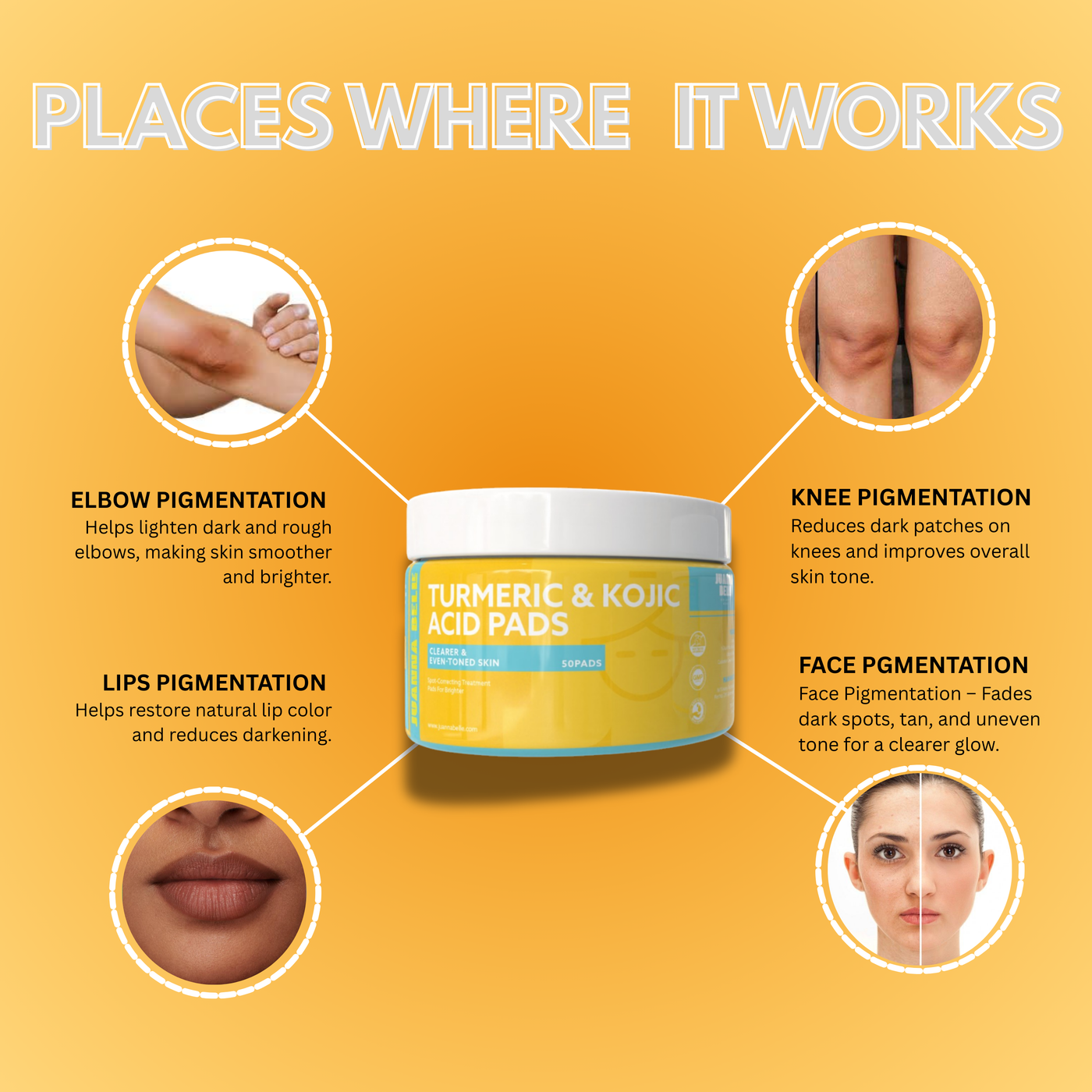 Ideal for areas prone to darkness like elbows, knees, underarms, and face.